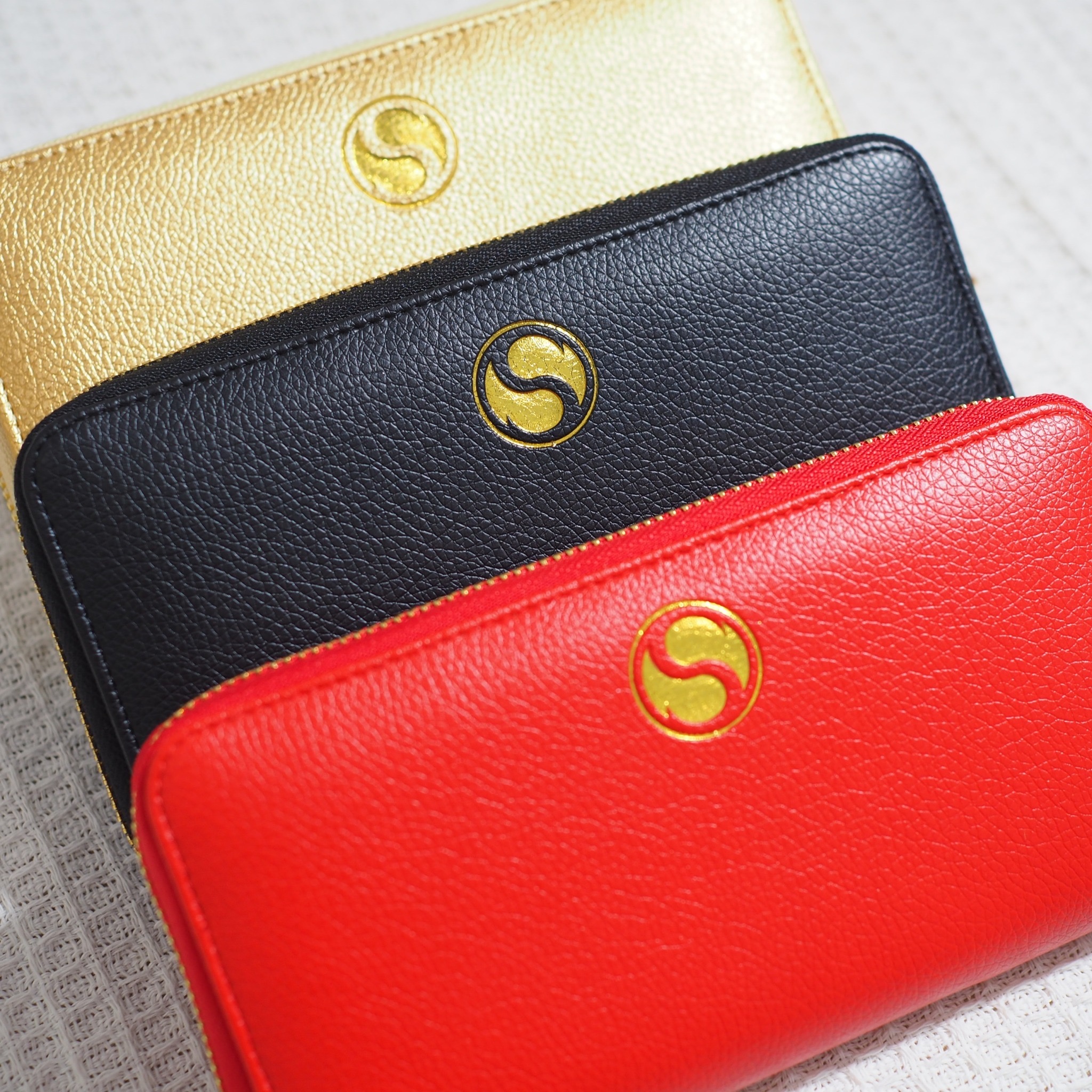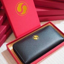 The rectangular shape of the bag symbolizes financial stability and strength. The zipper design — opening from front to back — represents the mythical creature Pi Xiu, which gathers wealth without letting it escape.
